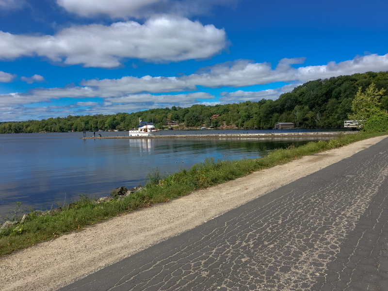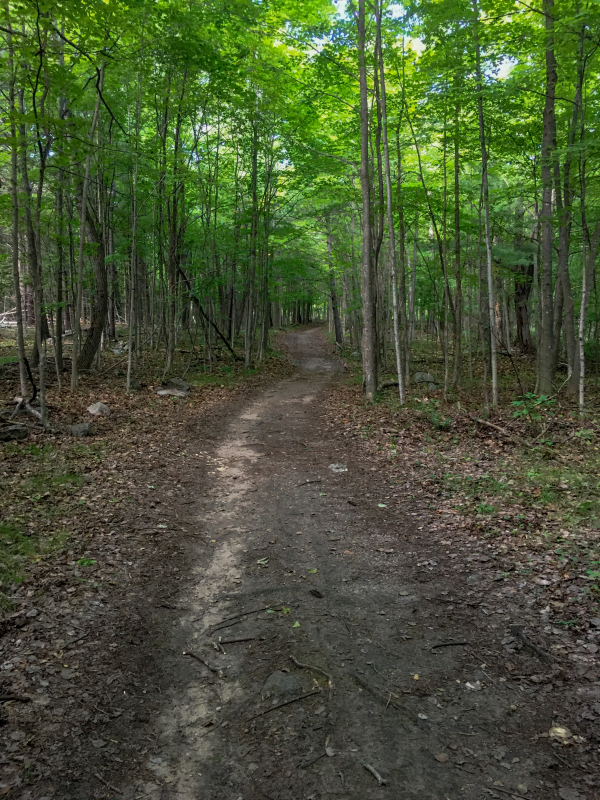 We also walked the MacPharlan Trail which is about 6 kms and you can hike or bike on it. We chose to walk and it’s a very nice trail, wide and with moderate hills. You cross a little bridge to the old buildings which are kind of cool. This takes you past Loon Lake also. The trail ends at the buildings but we continued past the buildings and the trail turns into the Rideau Trail which is a 300 km hiking trail from Kingston to Ottawa. We only went about another km or so and headed back the way we came. Only about 6 km goes through this park.