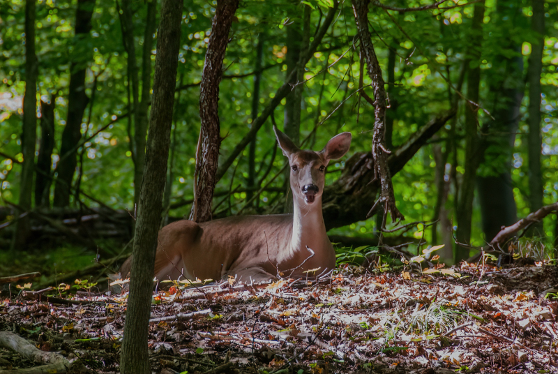 This doe just laid down in a small sunny spot and stayed there, having a rest