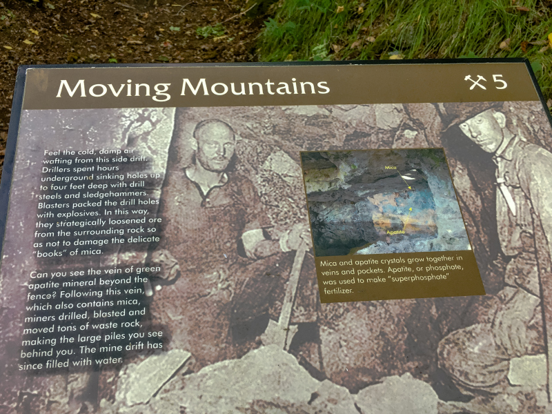 The Silver Queen Mine was located here and you can still tour where the mine was and see some old buildings. This mine was an early 1900’s mica mine. I had no idea what mica was until I read about it on the Park information boards. Mica are silicate minerals used in a variety of items; drywalls, paints, auto parts, roofing, electronics. Quite interesting to read about it.