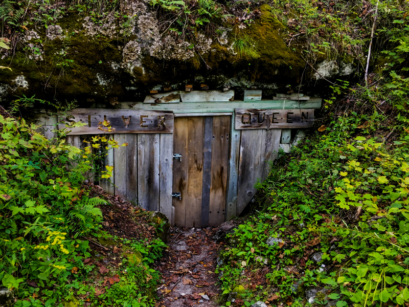 The Lally Homestead trail is super easy, about 800 m and you can see the buildings and farm fields as you walk the trail. It is right across from the Silver Queen Mica Mine Trail.