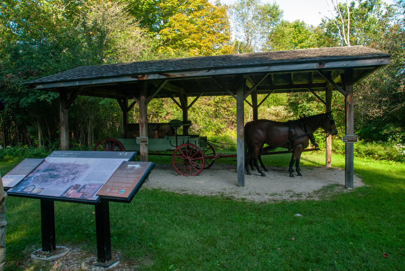 They have 5 trails, we did the Silver Queen Mine Trail which intersects with the Beaver Pond Trail, I think about 3.5-4 kms total. On the Silver Queen Trail you can view a restored early 1900s open pit mica mine, all fenced in and some old buildings. You park and start these two trails across the road from the Lally Homestead. I have to say the Beaver Pond Trail was not well maintained; weeds were growing over parts of the trail and due to the Tick issue you would have thought they would keep the trails clear.