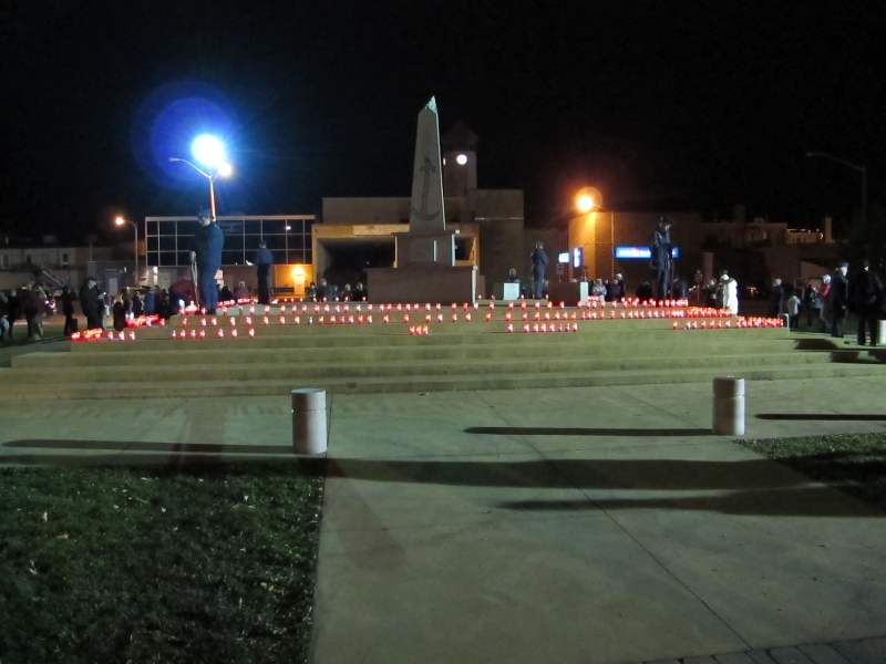 Below is an older photo showing the candles lit up at night around the Cenotaph.
