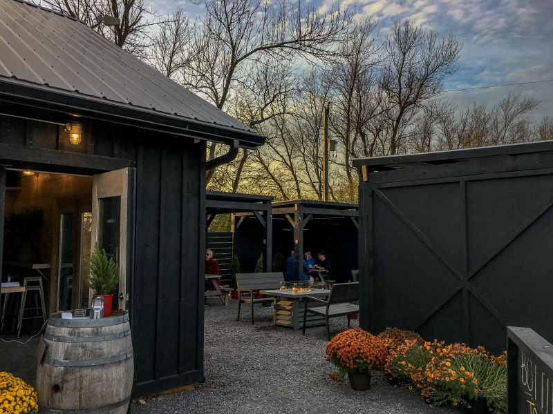 When you go to the back they have several picnic tables with overhead heaters and a couple of tables with fireplaces inset into the table. They also have an outdoor firepit with Adirondack chairs all around. Quite a cute spot to have a beverage in the winter without going inside.