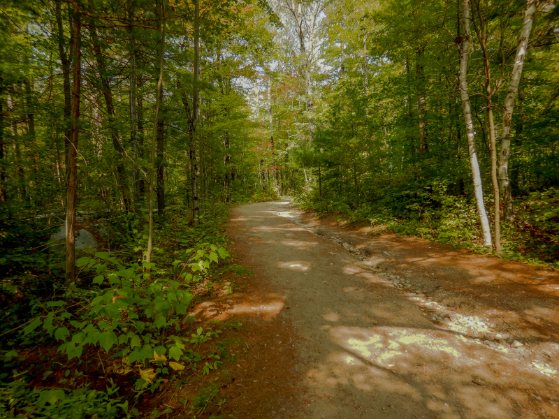 It was a pretty nice trail but lots of steep hills. A guy and his son were portaging their canoe and fishing equipment as they heard there was good fishing on a lake on the trail. He’s a brave one, he had an old heavy canoe probably weighing 80+ pounds. Our canoe is an Ultra Light and weighs 44 pounds. We didn’t envy him. As you can see below, quite a bumpy trail!