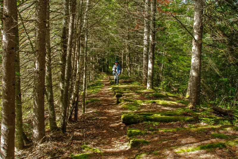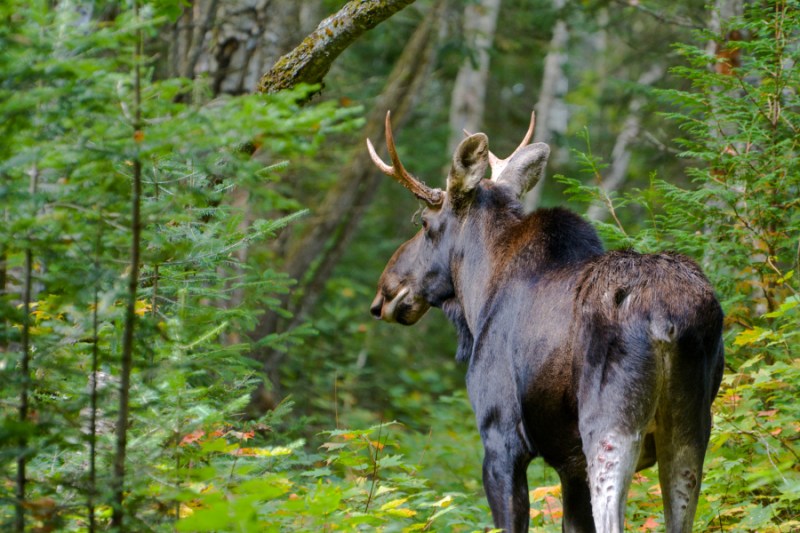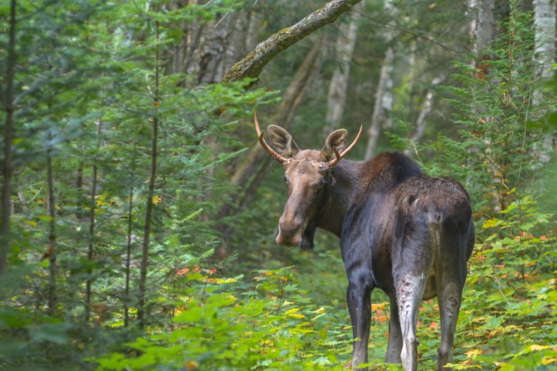We turned back on the trail and a few minutes later, we stopped dead in our tracks as there was a bull moose (albeit a young one) heading towards us on the trail. He didn’t look too happy and as it was rutting season we thought we would play it careful and take cover behind some trees. I got a couple of shots before we went into hiding. Clint videotaped him going slowly past us as we cowered quietly. Keeping in mind that Clint strategically placed me between himself and the moose lol. He denies it but we have video! The video is a little further down past some photos.