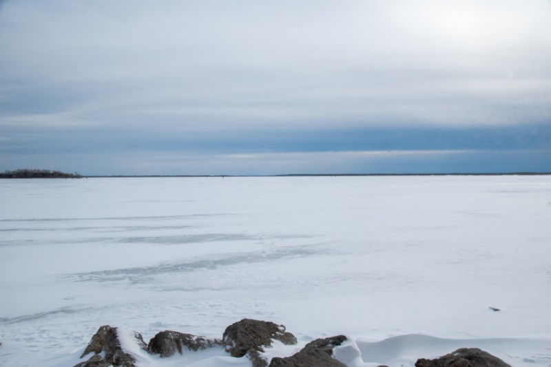 View of the Bay and way out in the distance you can barely see little dots which are ice fishing huts