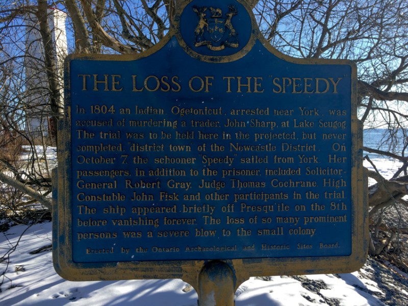 A sign is displayed telling about the loss of the Speedy, a ship that supposedly sunk off this shore. This is a very interesting article detailing how this ship, had it not sunk, could have changed the course of Canadian History. Click above link in the word Speedy to read it.