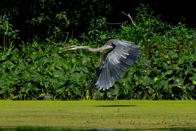 We have photographed herons all over Ontario. On the waterways, in ditches, on dirt roads, from our canoe, you name it. They don’t weight as much as you might think, maybe 5-6 pounds. I think their height makes up for their lack of bulk. They can grow to be anywhere from approximately 38-50 inches tall. They are the largest heron found in Canada and they can fly up to 55 kms an hour, which is quite impressive. Their lifespan is about 15 years but one was recorded as being 24 years old, not sure how they found that out!