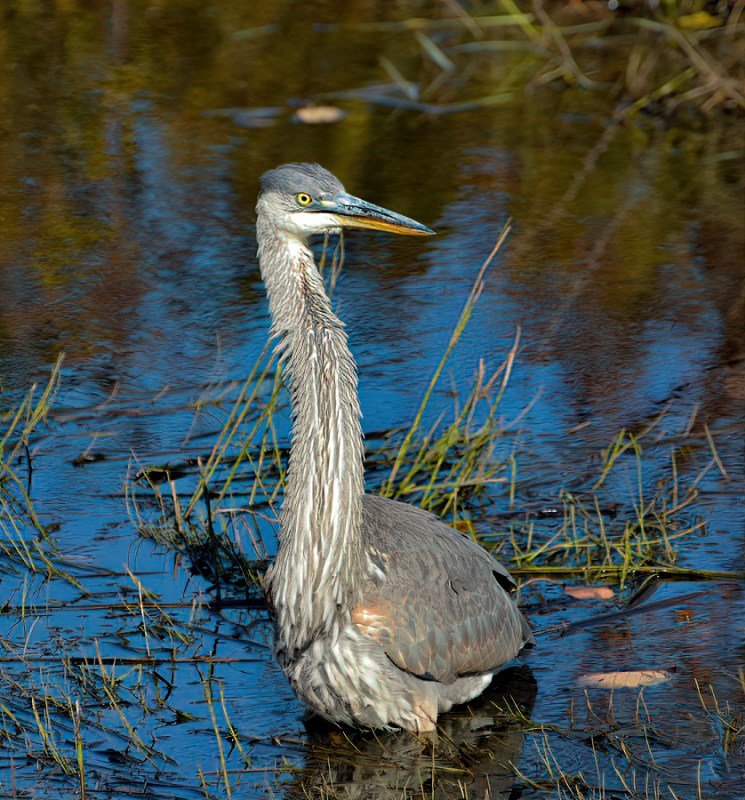 If you see a heron cleaning his chest or her chest, it’s because they have specialized feathers that are always growing and they need to wash off the remains of their meals. I think the fellow below took the chest cleaning a little too seriously. I don’t even know where his head is.