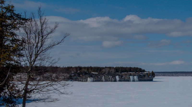 After that we headed to Long Point . We stopped at this rock face on the way there, it was covered by ice, kind of cool.
