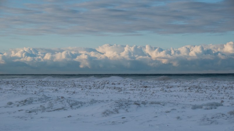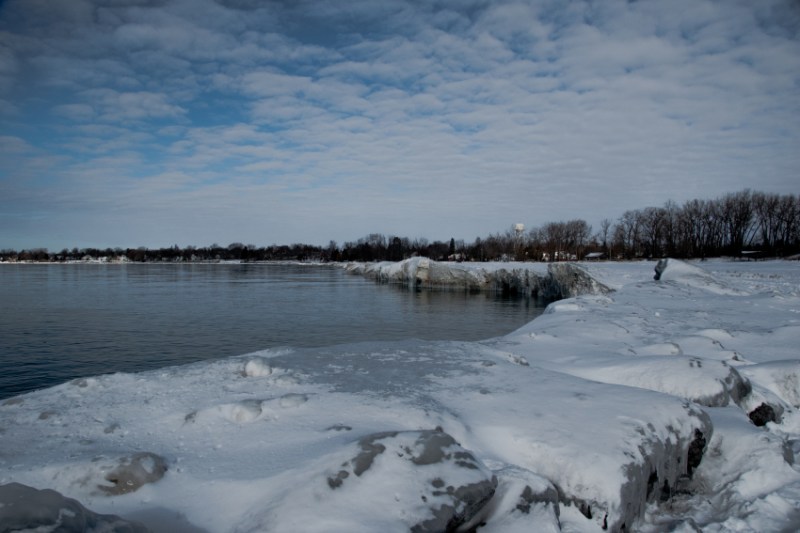 The photo below I took while standing in front of the Lighthouse and looking back towards Wellington Bay. Clint and I like to canoe in Wellington Bay in the summer, not so much in Lake Ontario!