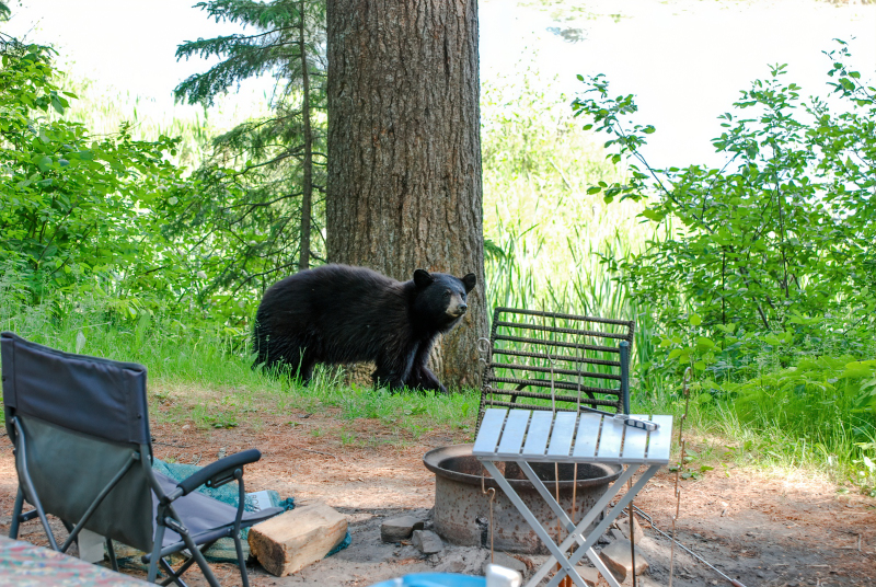 In 2016 there was a young Black bear cub hanging around the campgrounds in Algonquin Park. He may have been about 2 years old. One day we had been out canoeing all day and came back to our site to sit and have a beer. I felt someone watching me and I looked up and he was about 20 feet away by our firepit. He wandered up and down the rows of campsites 2 or 3 times a day looking for food. He was not scared of humans at all. I felt bad for him, in fact, my husband said that little bear had the saddest eyes he had ever seen.