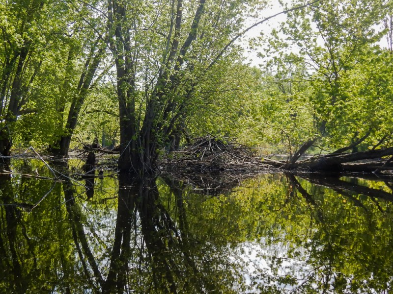 We did see another snake but he was in the water swimming along so neither of us got a good photo. We also saw a beaver and his houses, herons, Bald Eagles, and more! It was a great day and the water was pretty calm, we did have quite a bit of wind when we paddled back to the launch. Around the corner from where we saw the snake there was a beaver house. We had seen the beaver earlier but I wasn’t fast enough to get a photo.