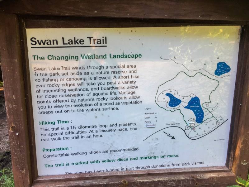 The trails here are all unique. We really enjoy the Swan Lake hiking trail which is only about 2 – 2.5 kms long.