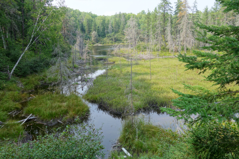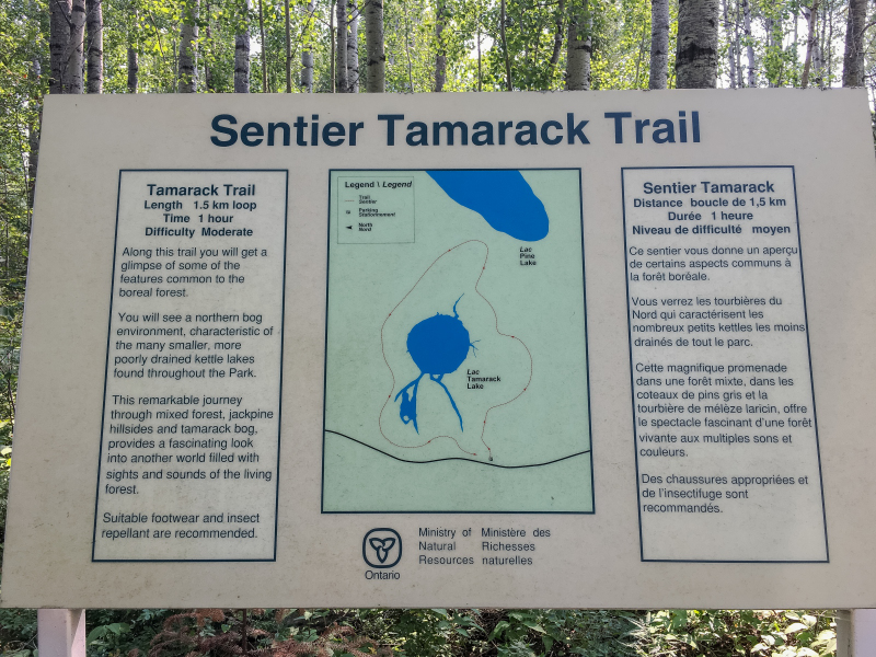 They have some nice trails in the Park, Tamarack is one. This trail is only about 1.5 km long but we liked it. We also did the Kettle Lakes trail, 2.3 km. It went past the top end of Pine Lake and past another little no name lake, beautiful big beaver house on it. The trails here are really well maintained and cut back.