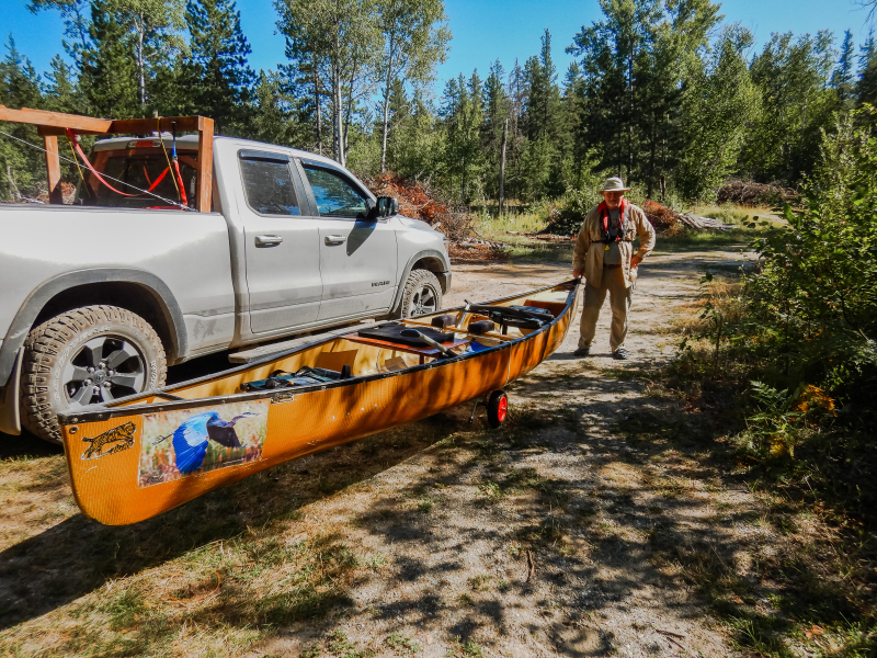 Clint’s new purchase, you can see a red wheel under the canoe