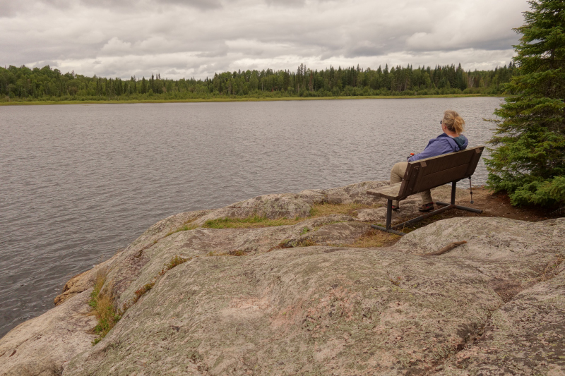 The last day we were here it rained again and still cloudy and windy and also went back down to 15 Celsius. Blah weather, fall is on it’s way! If you haven’t been to Northern Ontario you can pretty well depend that summer is just about over when mid August, or earlier, comes. Not always but usually. We decided to walk the Achilles Lake Trail to Achilles Lake, about 1.1 km total. It was a really nice little lake but we only saw a couple of loons.