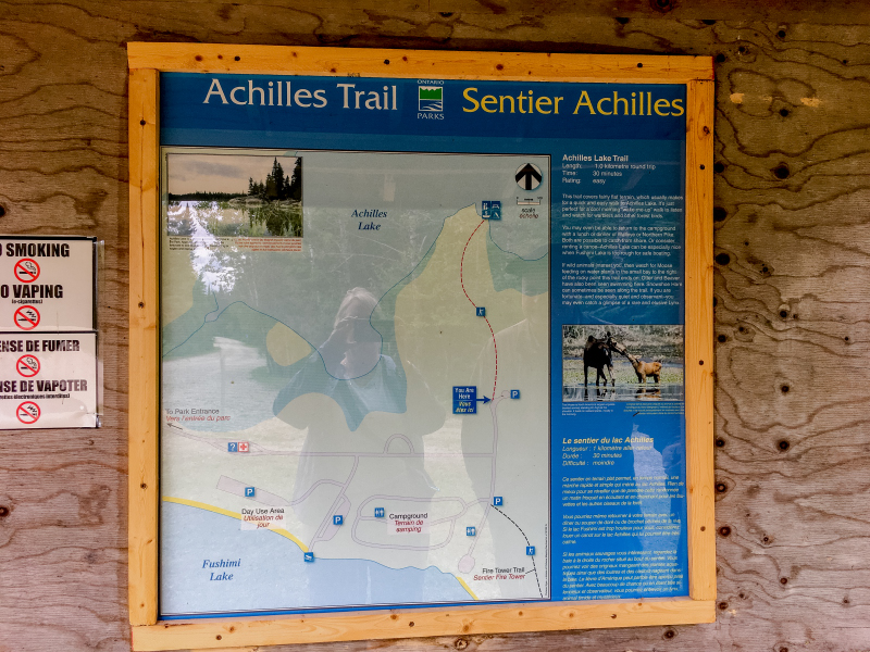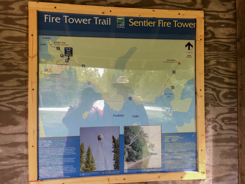 Fushimi is about a two hour drive from Nagagamisis Provincial park. This park had only about 50 sites total, quite a few were seasonals. We had site 29, a nice site on the corner and it was pretty private and not too many neighbours. To get to this park, take Highway 11, when you spot the Parks sign, turn North and drive on a dirt road about 12 kms on a side road before turning down another dirt road, driving about 4 kms, before hitting the main gate. Phew! got there finally. It was really raining the day we arrived so we just drove around the Park which is situated on a really big Lake called Fushimi Lake! Big surprise lol The name Fushimi intrigued me so I researched it and found out that Prince Fushimi (Hiroyasu), cousin of Emperor Meiji, was the second Japanese royalty to visit Canada & Vancouver in 1907. In honor of the Prince’s visit, Fushimi Lake Provincial park in northern Ontario was named after him. I think that’s very cool. You can paddle on Fushimi Lake or parts of the Valentine River and there are only two trails to hike; Achilles Lake trail, 1 km and Fire tower Trail, 7 kms.