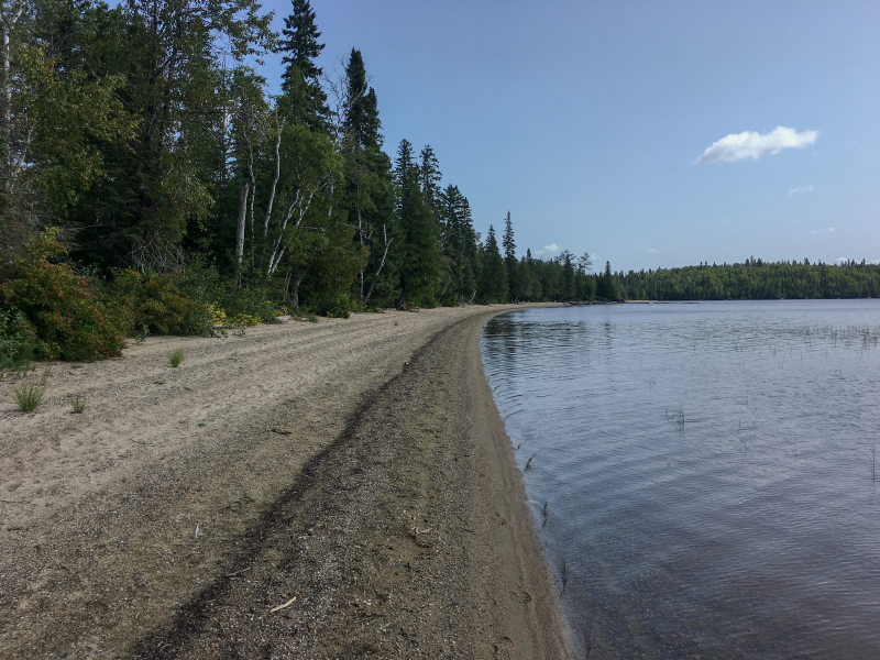 After that we decided to leave the Park and when we got to the dirt road we drove north to see what was there. We ended up on a logging road driving about 25 kms before we turned around. We spotted a small lane that we drove down and that ended up at a beautiful little lake and what looked like a quarry to the right of it and maybe a camp. Back to the main dirt road and we drove further down and parked on the road to walk to another lake. At another spot, we took another dirt lane and it also led to a camp, not used, probably used for hunting in the fall. We were very adventurous today and we spotted not one other person. I guess they were all at the beach.