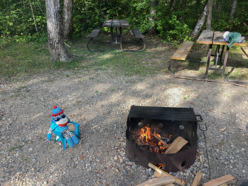 Back at the Park, we actually saw Parks staff filling up potholes on the campground roads with gravel, we could not believe that! They really take care of this park and you can tell because the campground roads are in really good shape. There was no fire ban but boil your water was in effect. We almost always buy our drinking water, I don’t even drink tap water at home, our water is quite chlorinated. We did have one fire one evening when we were here, in between rain storms.