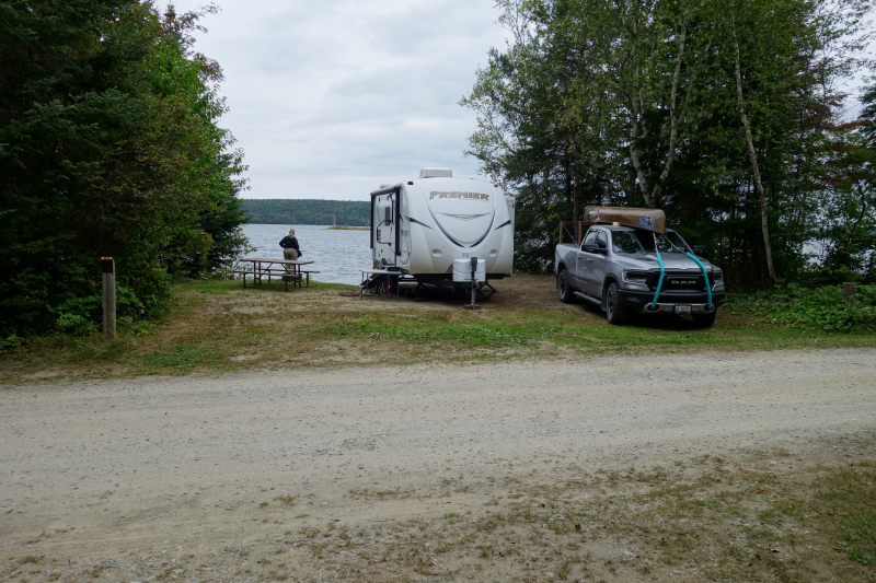 We had a beautiful site right on Wakami Lake, not one of the nicest sites we have been on but the view was great. So this lake is 35 kms long and also offers Interior camping, or backcountry camping. We had a welcoming committee, a bunch of ducks hanging around the shoreline at our site. This park has very poor Cell Service/WiFi, you have to go to the Parks Store to use it, and also no electricity sites in the Park. I don’t mind no electricity, it feels more like camping. They have four trails, 1 km to 2.5 km, but two were closed while we were there. Canoeing and kayaking on Wakami Lake and they also have backcountry sites.