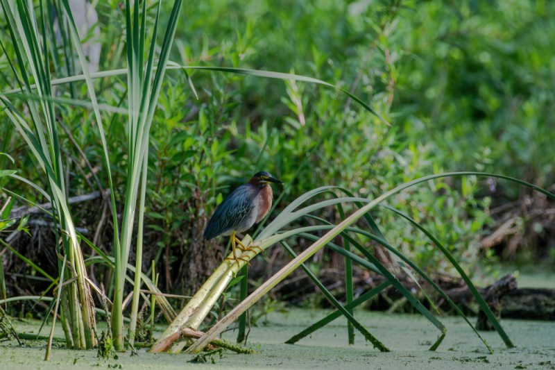 It was fairly cool weather where we were traveling but when we got home last weekend, it was a heat wave. We were at 40+ Celsius and that’s HOT! lol We went biking one day and I only went on the promise of stopping for a beer; even though it was quite hot we managed to bike a fair distance and then stopped for a Frozen Dacquiri. It’s a little cooler now, maybe 25-27 Celsius. Last Wednesday we were able to get out to paddle the Moira River, the river is located where we live. We were on the water by 830 and what a beautiful morning. Did I mention we were the only ones there? It’s one of our favourite spots to put our canoe in and it never disappoints. We saw several Green herons, Kingfishers, Blue herons, turtles, ducks, and one lone raccoon. I got one lousy shot of the raccoon as he was kind of behind me in the weeds when I saw him so I am not showing anyone that photo, we couldn’t back the canoe up fast enough!