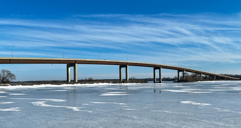 This is a random photo. It is the Bay Bridge that goes across the Bay of Quinte from Belleville to Prince Edward County. I live just west of Belleville. We have a beautiful waterfront with trails, playgrounds, boat launches and more. Clint and I went for a walk a while back and I snapped this with my cell phone.