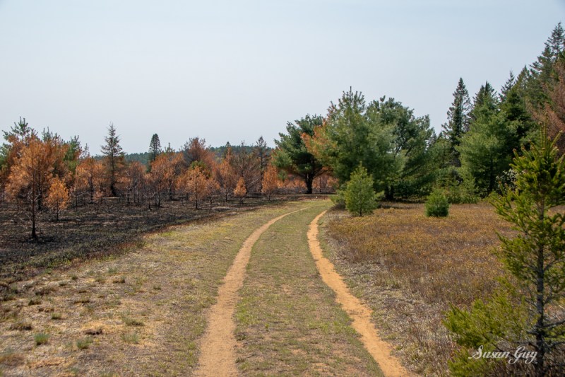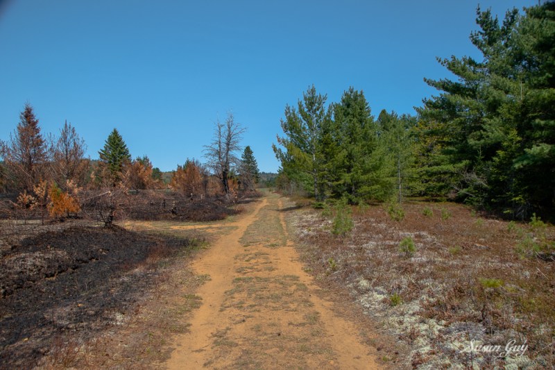 We usually stay at Mew Lake Campground when we go to Algonquin Park. Just along the road heading into the campground is an old abandoned airfield. They regularly do controlled burns in this area and as you can see from the photo above, they had just done one recently. This is to maintain this area as an open space and enhance wildlife.