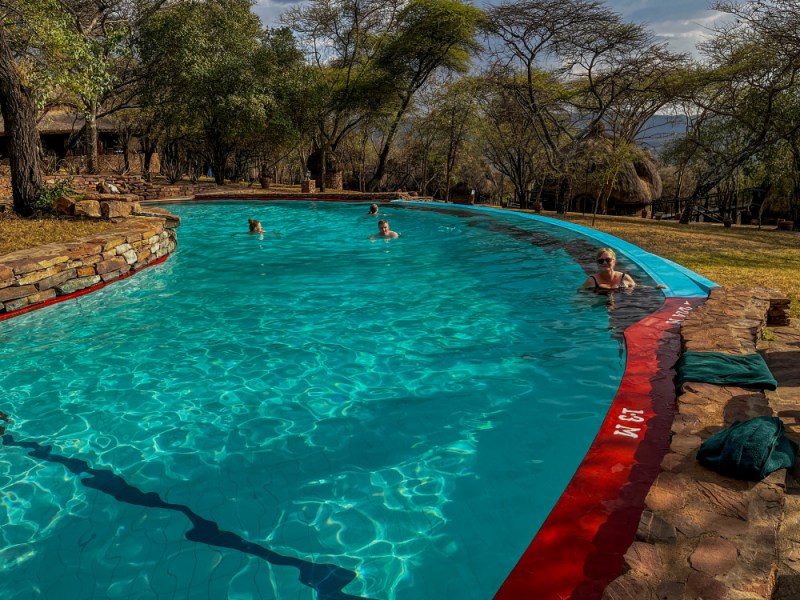 It was an amazing place and we really enjoyed it. We had to be escorted to and from our cabins in the early mornings and evenings. The reason being is that this is one resort that is not fenced in, animals can come and go as they like. the day before we got there, they had Cape Buffalo wandering around the resort area. One evening we had one of the guards, they all carried weapons, take us back to our room. I said to him as we walked, what kind of animals might be here at night to bother/kill us? He flashed his flashlight to the left and there were about 20 rabbits sitting in the field eating hahahaha.