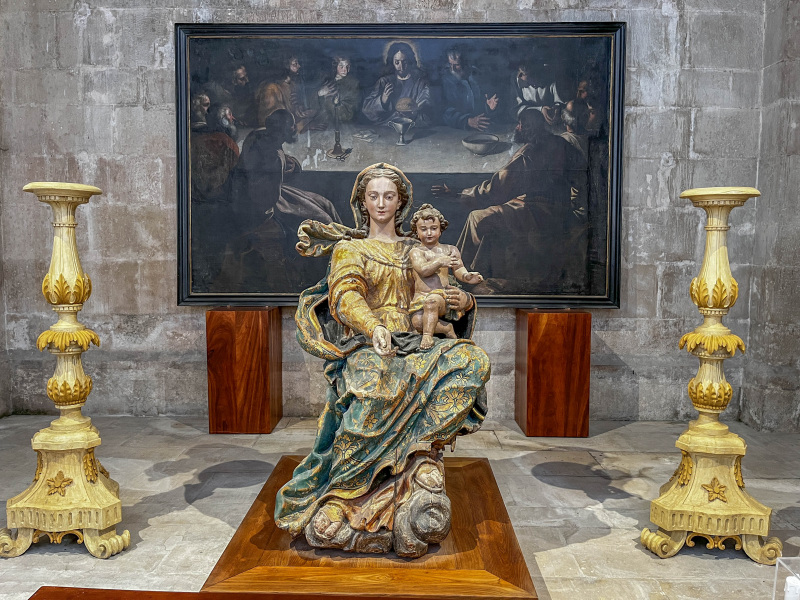 The stained glass here is beautiful. I like the contrast of the angry-looking sky against this very old monastery. I can see why it took several hours to tour it.