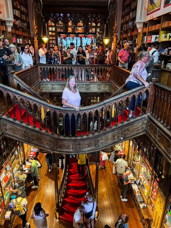At the end of the day, Clint and I left to find a bookstore, but not just any bookstore ! Livraria Lello is a bookstore that possibly gave JK Rowlins some inspiration for the Harry Potter books. It’s also very, very beautiful. You have to get tickets to go in the store and you should reserve early as it’s quite busy. We did not have tickets and you have to reserve them online but Clint talked nicely to the security guard at the door and he let us in after we paid cash for two tickets. He probably thought oh those two poor seniors from Canada can’t work the Internet lol