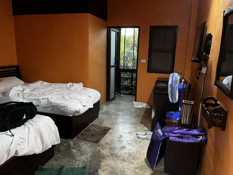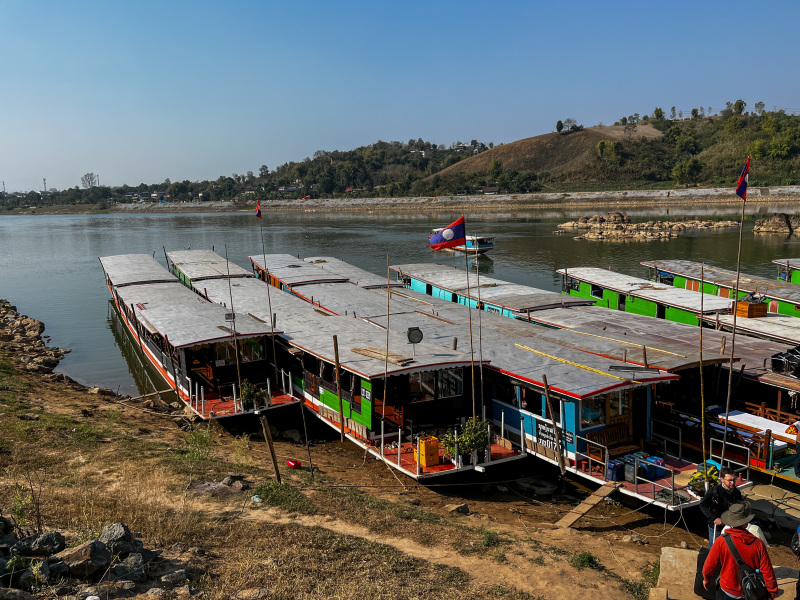 Now we are leaving Thailand and entering the country of Laos. On this occasion, the bus didn’t drive over the border, there was a reason but I forget. We had to get out and walk with our suitcases to the border, about a 10 minute walk I think. We got there and filled out some paperwork to go with our visas and then we walked over the border into Laos. I just want to note that G Adventures is our favourite tour company but if you want a luxury trip where you don’t carry your luggage, you sometimes sleep in villagers houses or have very rustic hotel rooms or other things of that nature, don’t book with them! We love them BECAUSE of all these things.