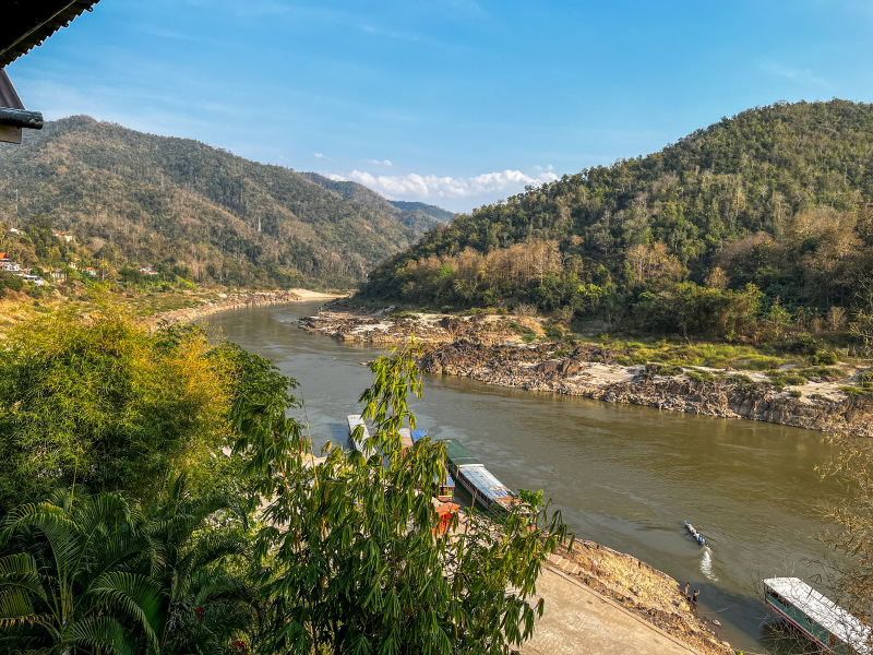 When we got to the top, we looked back to the river and saw all the boats tied up, one of them is our boat.
