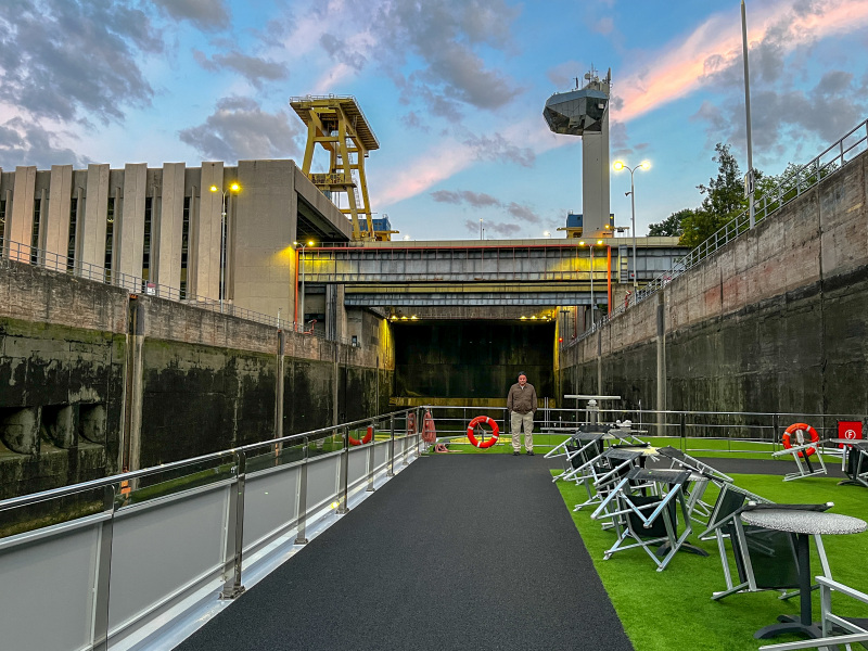 We went through the Iron Gates which refers to a gorge on the Danube river that forms a boundary between Serbia and Romania. The gorge is about 134 km long and there are lots of towering cliffs, narrow passages and two dams. We got up at 4:45 a.m. to go to the top deck and watch the boat go through the lock system which took about 1 1/2 hours.