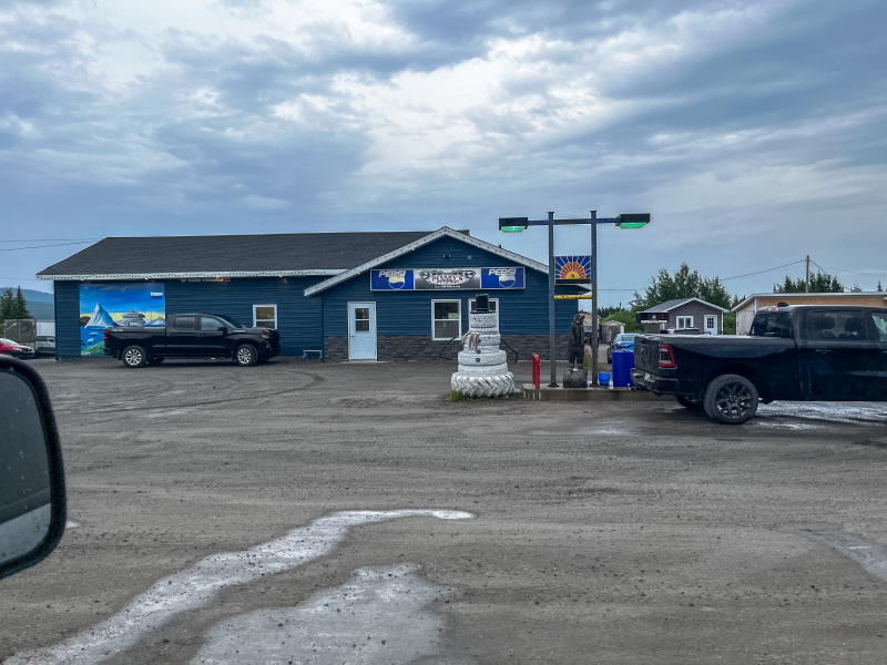 We asked about campgrounds and there were two, park at the gas station or you can camp down by the river. We opted for the gas station at $50 a night but we did have hydro!