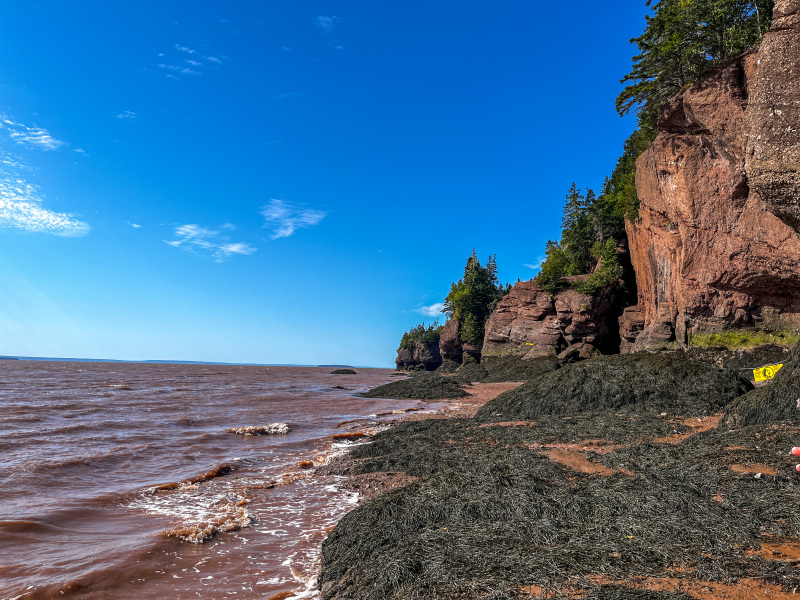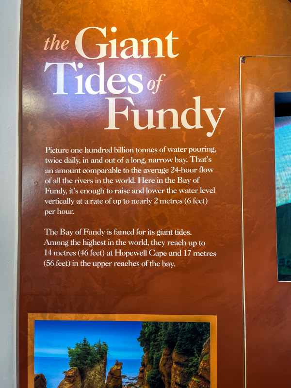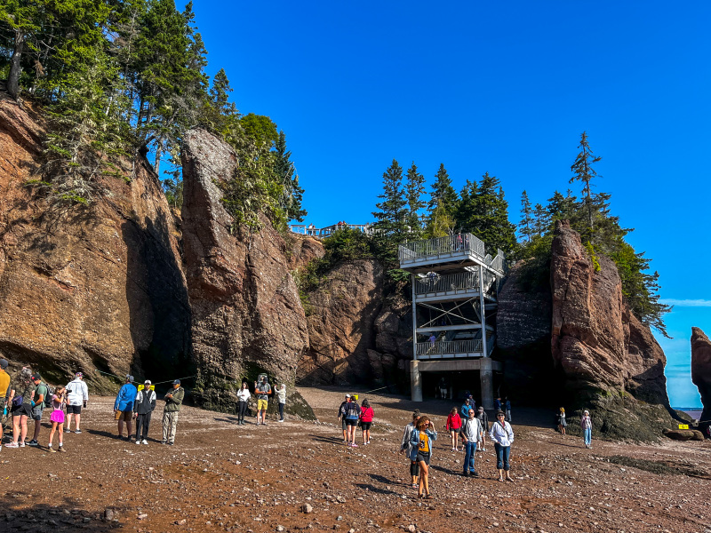 We drove to the Bay of Fundy to watch the tides. You walk from the Visitor Centre on a trail and then go down a few flights of stairs to get to the ocean floor. The Bay is a large inlet of the Atlantic Ocean and the tides are quite impressive. By the time we left, the water had flooded into the Big Arch in above photo.