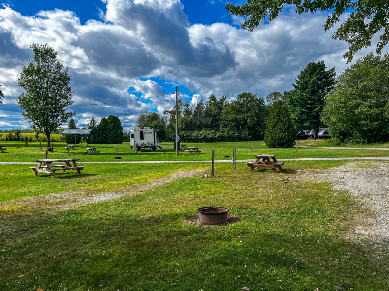 A couple of miscellaneous photos. First is our campground, our trailer is the only one there. And crikey! It’s another field at Lac Saint-Michel campground.
