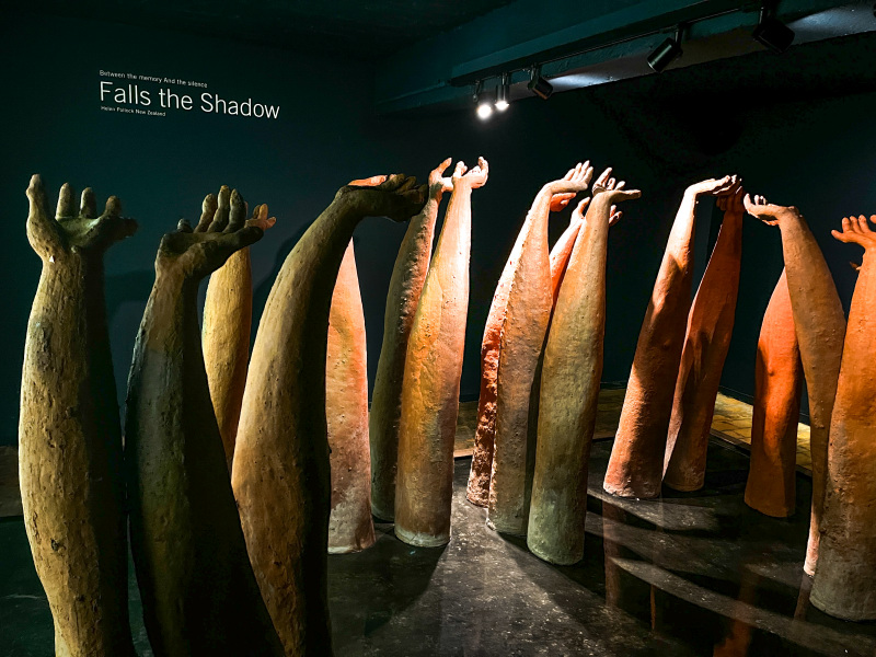 At the museum, there was an exhibit of sculpted arms reaching up to the sky called “Falls the Shadow”, a sculpture by New Zealand artist Helen Pollock featuring clay arms reaching up from a “sea of mud”. She wanted to symbolize soldiers who died in the 1917 battle, symbolizing both the futility of war and begging for a better world. She did this for the 846 New Zealanders who, in a single morning, died in the battle. She used clay from New Zealand and clay from the Zonnebeke battlefield. Photo below