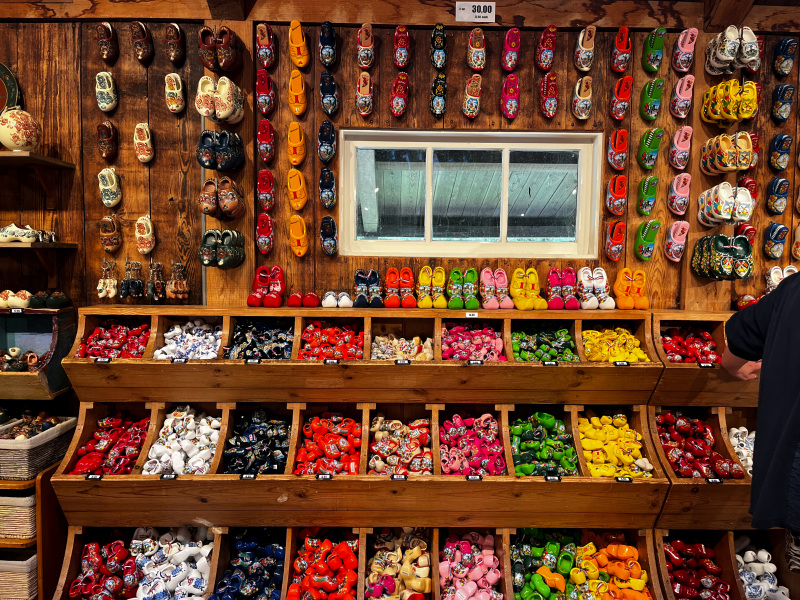 Above photo is a huge selection of wooden shoes for sale.