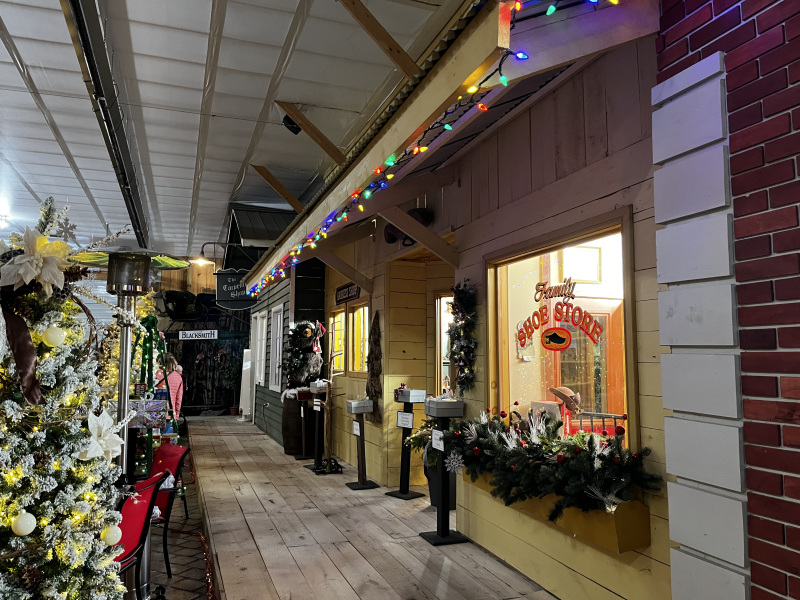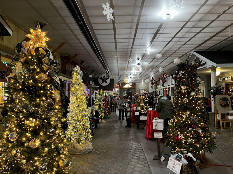 Farmtown is a wonderful place, a huge building and down either side (inside) are boardwalks and old timey stores and for the Festival they put the trees and other items down the middle on either side.