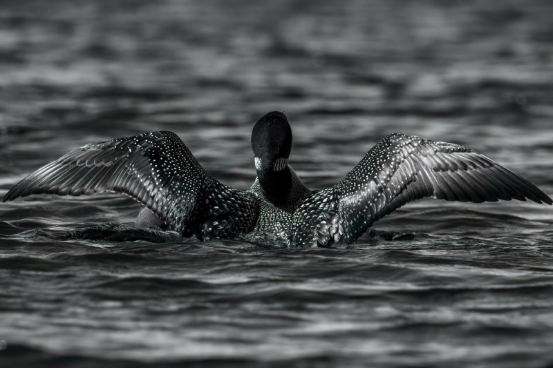 I thought I’d try this in B&W. Under her left wing you can see a bit of the juvenile hanging out under his mother’s wing