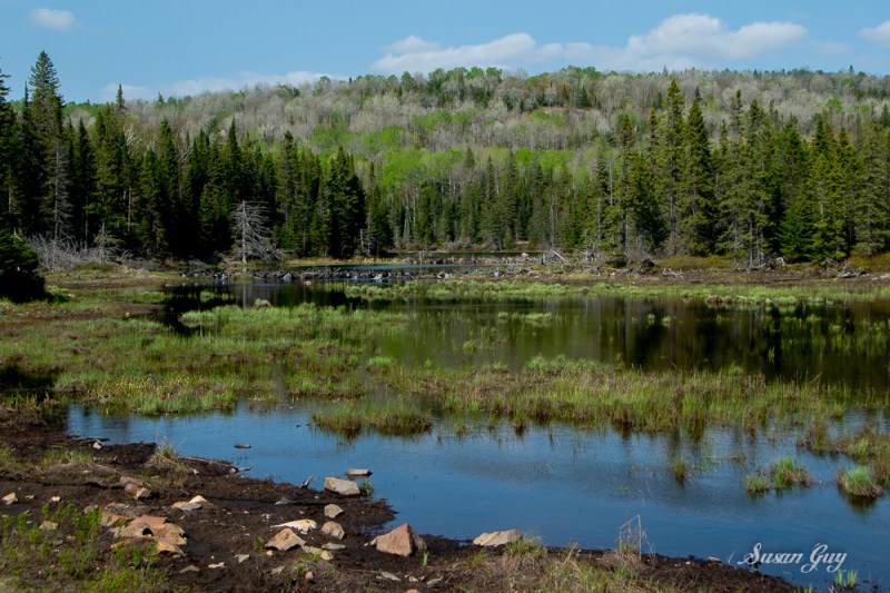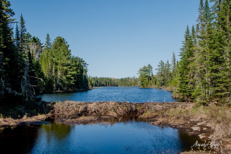 Below is one of my favourite spots in the Park, it’s March Hare Lake. From the road there is a small body of water and then the dam and then the lake. Every time we go there the water seems to be at different levels. This year the water was low but other times, the water will be right up to the top of the dam. And yes, in case you are wondering, we have put our canoe in the lake on the other side of this dam too so we could go for a paddle.