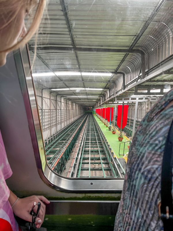 When we left, there was a funicular to travel back down so we thought we would take that instead of walking back down. Besides, I do love funiculars