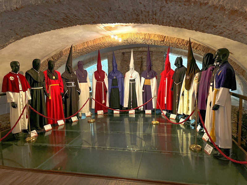 Now we are off to Caceres which is also a World Heritage site because of the blending of Roman, Islamic, Northern Gothic and Italian Renaissance architecture. Really interesting buildings in this city. As we walked around, I went into this tiny museum where they were displaying these outfits. I found out the pointy hats are Capirotes, which they wore as penitents so attention was not drawn towards themselves as they repent but the attention was given to God. Seriously? If I saw someone wearing one of these pointy hats, you can be assured my attention would be fully on that person!