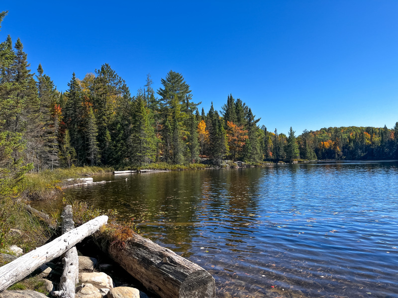 Another trail I like is hiking down to Little Rock Lake which is only about 3 kms total. This trail is quite difficult due to lots of rocks, water, roots etc. The end is really nice though, we like to sit down there by the water. It’s a beautiful spot in the Fall and it’s also where I almost lost Trum last year! He fell out of my backpack, trying to escape I guess, but Clint saw him and rescued him.