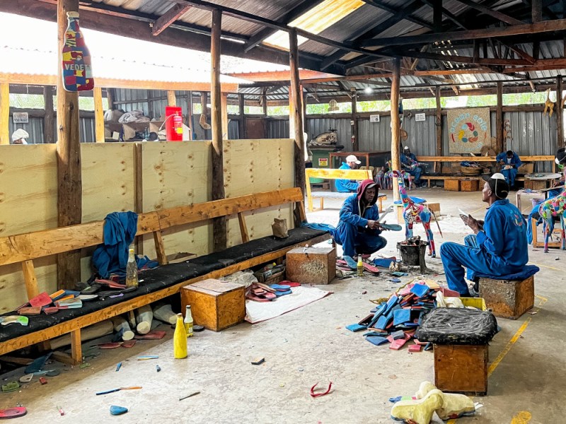 We are on our way to Amboseli National Park but we had a couple of stops on the way there. We stopped at Ocean Sole, Flip the Flop, to see what this terrific organization is all about. They recycle a million flip flops a year, recycle over one ton of styrofoam a month and save over 500 trees a year by using flip flops instead of wood to make functional products, toys and artwork.  Isn’t that terrific? Flip Flops are the shoe of choice for a lot of Kenyans but they don’t last long, so this is an ideal way to recycle and reuse these items.