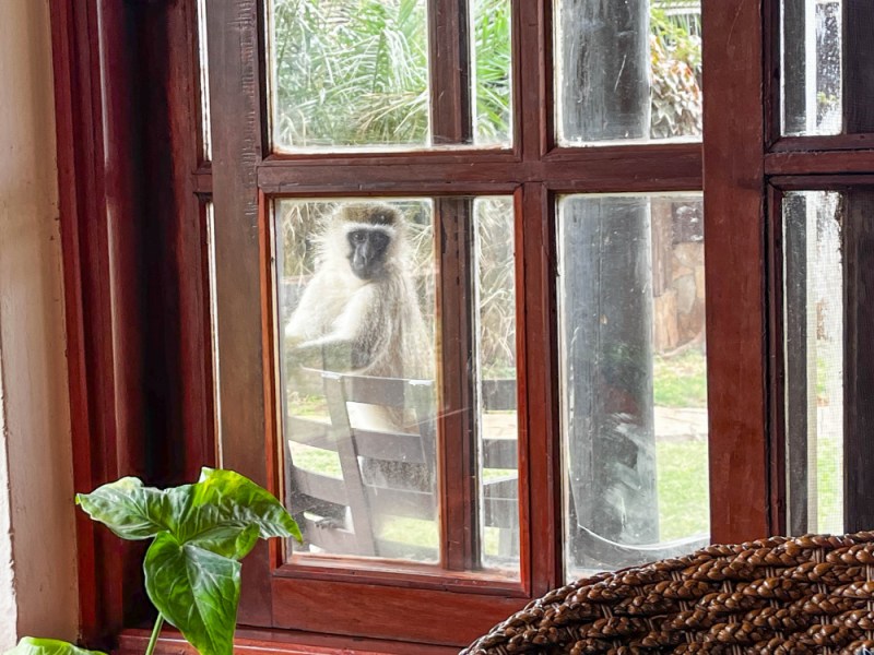 I forgot to mention that we were told to always keep out doors locked at all times, the monkeys are quite smart and I took a video of one little guy getting into a garbage bag while a fellow was cleaning a room. He had left this bag and his supplies outside and the monkey was going to town ! I did put a video of him on my Trums Travels Facebook page. It was pretty funny.