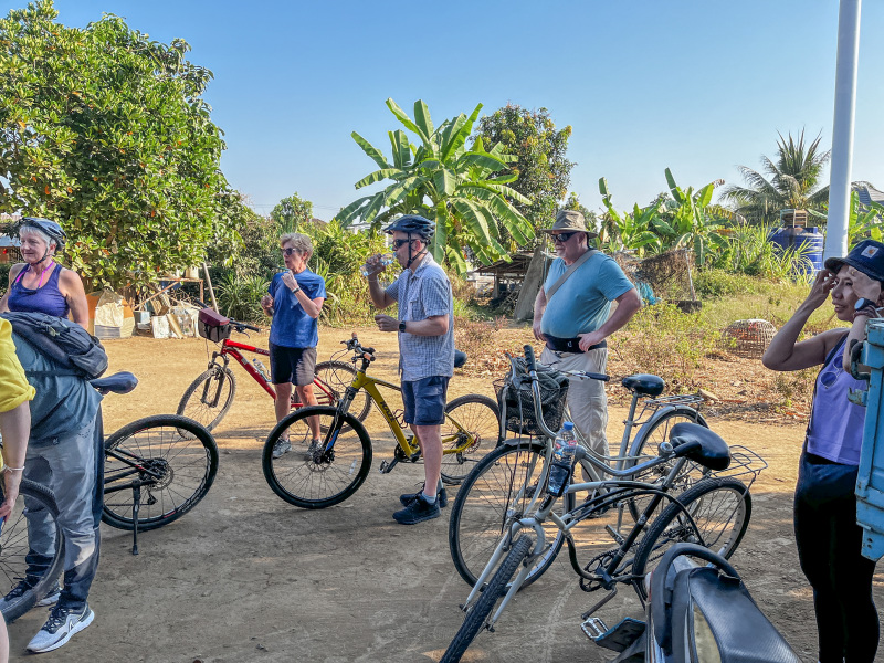 Clint and I do a lot of bike riding and it’s always fun to bike around other countries. We had kind of old fashioned, regular pedal bikes and it was a fun time. We stopped at a place and bought some sticky rice; the rice was placed inside bamboo pieces for holding/eating without the use of plates or bowls. We stopped at a rice paddy and we stopped at a house made entirely of teak. This property also had these baskets all around the property and there was a rooster in each basket as they were big into cock fighting. Not my thing but it’s their culture right? Towards the end they took us to a spot where they sold deep fried bananas, not a fan of bananas so I cannot tell you if they were good or not! We also stopped at a little outdoor restaurant and they gave us bowls of soup. I have no idea what kind of soup or what was in it, but it was really good.