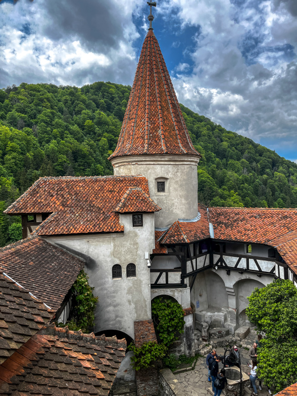 Today is exciting, we left Bucharest to go to the city of Brasov for 3 days. On the way, we went to Count Dracula’s castle in Transylvania, actually called Bran Castle. (Photo above) On our way there, we passed the Carpathian mountains and our guide told us that there are 6000 bears and wolves living in this area. Transylvania means “Beyond the Forest” in latin.