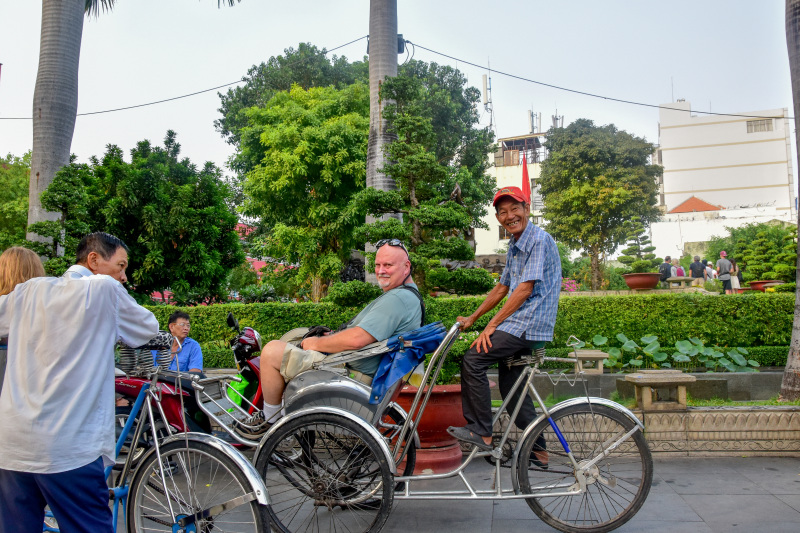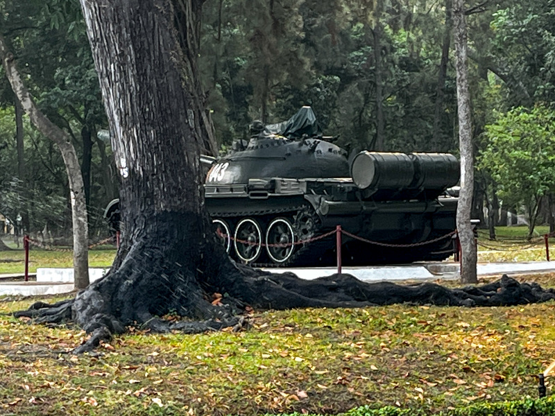We did a cyclo tour, we sit in a little wagon? and someone pedals us around the city. Clint is on a cyclo in the very first photo on this post. We also went to Independence Palace and saw a few other things on our cyclo tour. There was a tank outside the Palace, it’s one of the ones that rammed the gates during a coup by the North Vietnamese. These tanks were instrumental in These tanks were instrumental in the events of April 30, 1975, which marked the end of the Vietnam War.